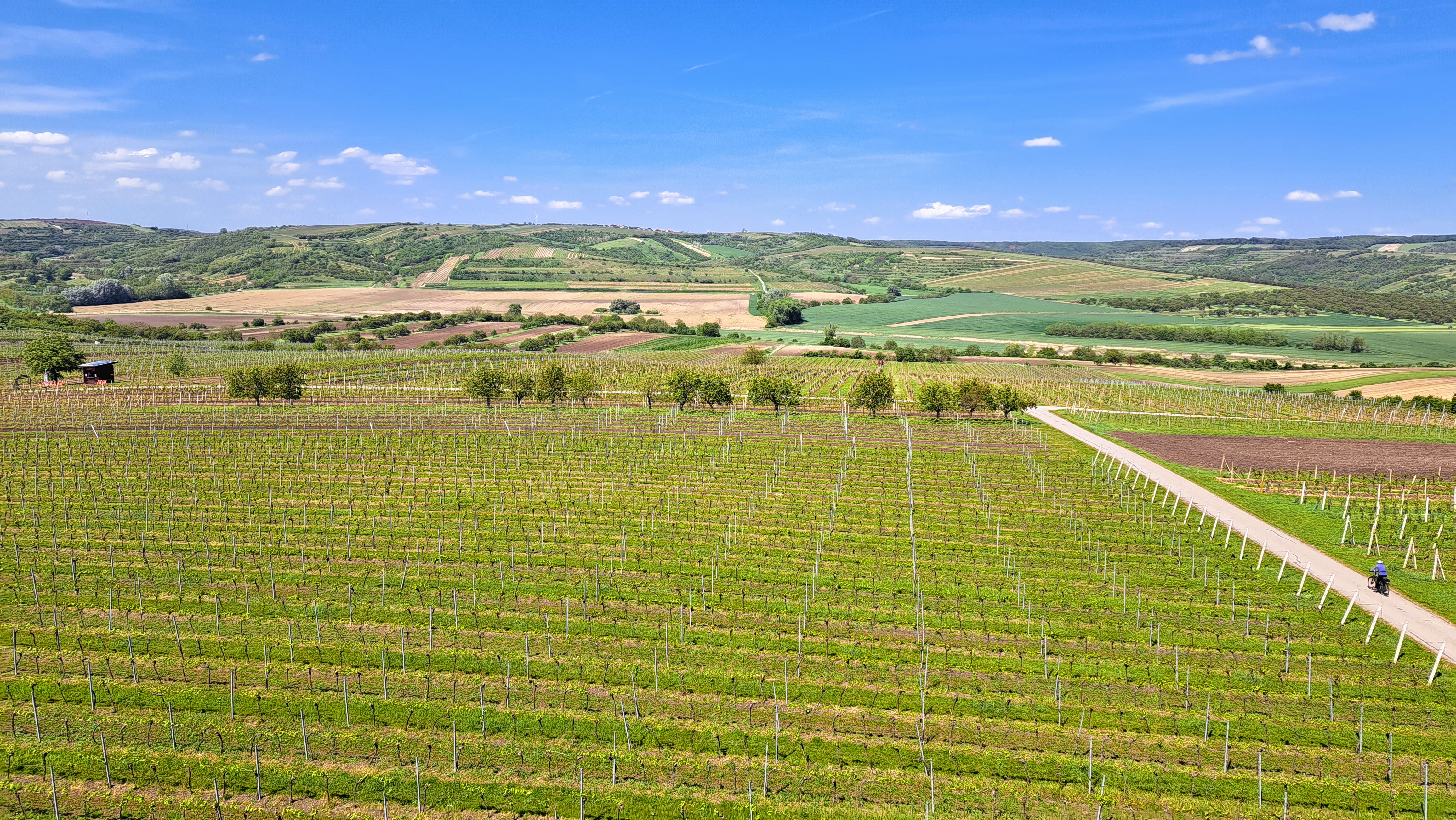 we are glad that you have chosen a cycling trip as an accompanying program. Our adventure will start at 2 p.m. in the parking area in front of the hotel, those who have a booked bike will find it there. Then we will ride together along the planned route https://mapy.cz/s/kuzegetehe> towards four hills and two lookout towers (U obrázku, Slunečná). From there you will be able to enjoy the view not only of the surrounding flowering vineyards, but also the Nové mlýny reservoir (the largest water reservoir in Moravia) and the towering Pavlovské vrchy, which are part of the Pálava Nature Reserve. At the Slunečná lookout tower there is a pleasant refreshment area where you will be able to taste local wines. Since after the sporting performance we need to recover, there will be a hotel spa waiting for us with a steam and Finnish sauna and a nice water bar, which will be just for us bikers :-)